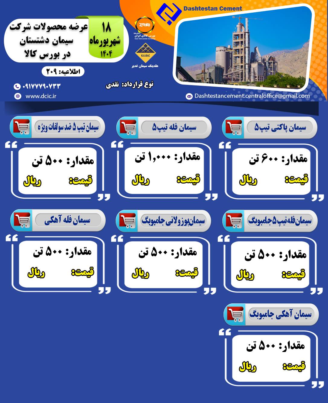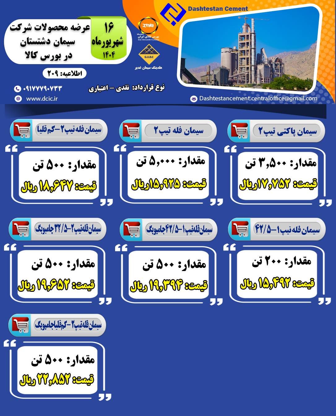 عرضه محصولات شرکت صنایع سیمان دشتستان در بورس کالا در تاریخ ۱۶ و ۱۸ شهریور ماه ۱۴۰۴